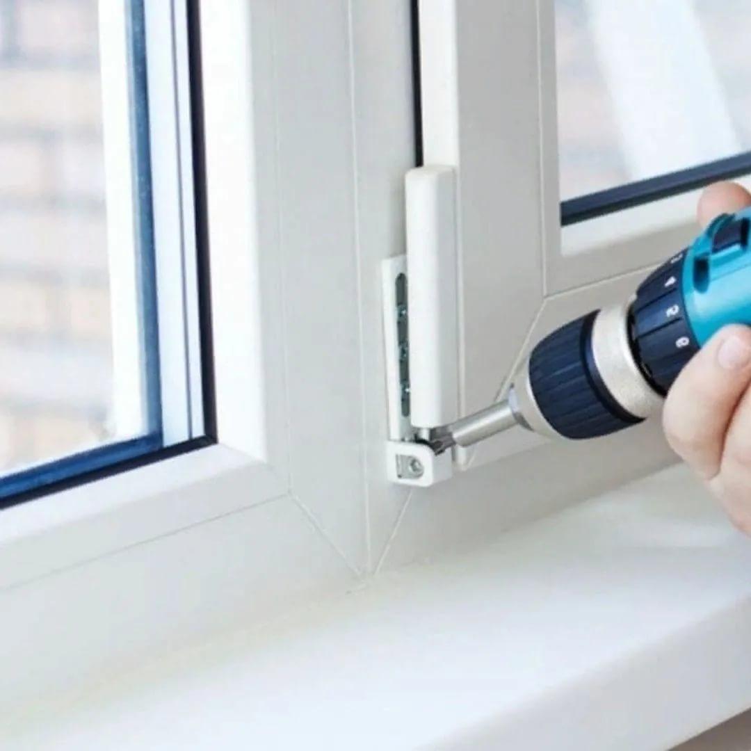 3. Фиксация всей конструкции в оконном проеме. Мастер выравнивает окно горизонтально и вертикально и закрепляет.